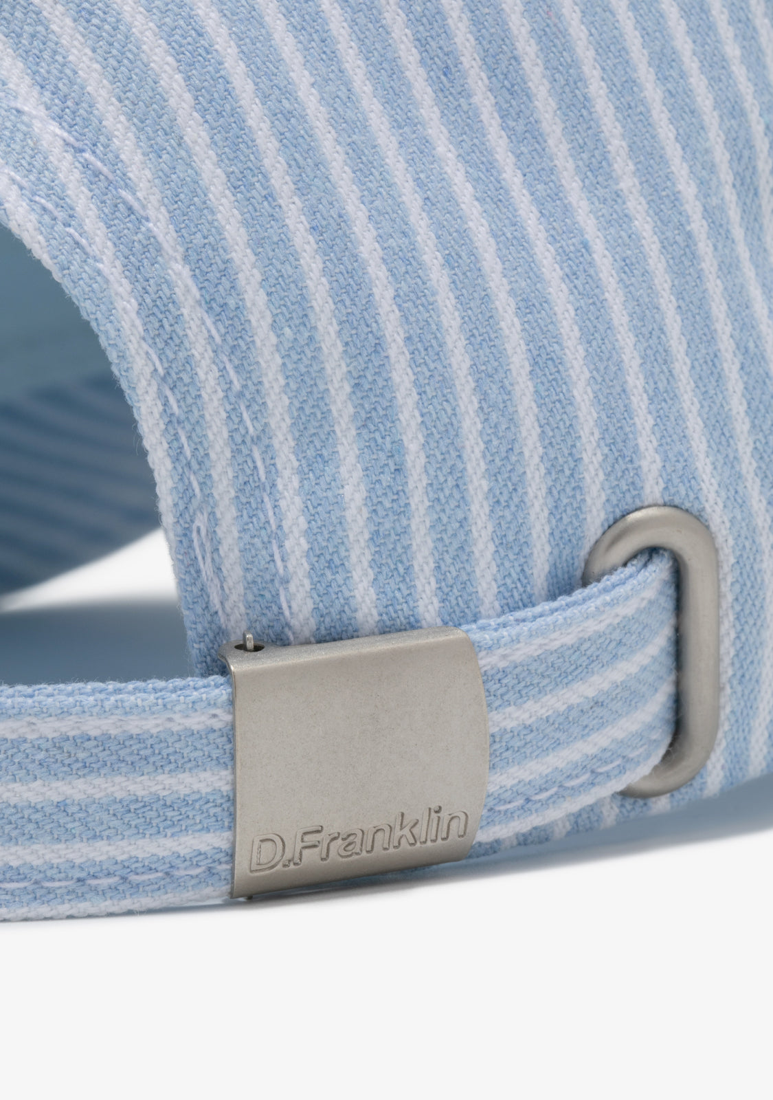 Die Stripes Baseball Cap Denim von D.Franklin ist eine Unisex-Cap in hellblauem Denim mit einem dezenten Nadelstreifenmuster. Aus 100% Baumwolle gefertigt, ist sie leicht, atmungsaktiv und bequem für den täglichen Gebrauch.