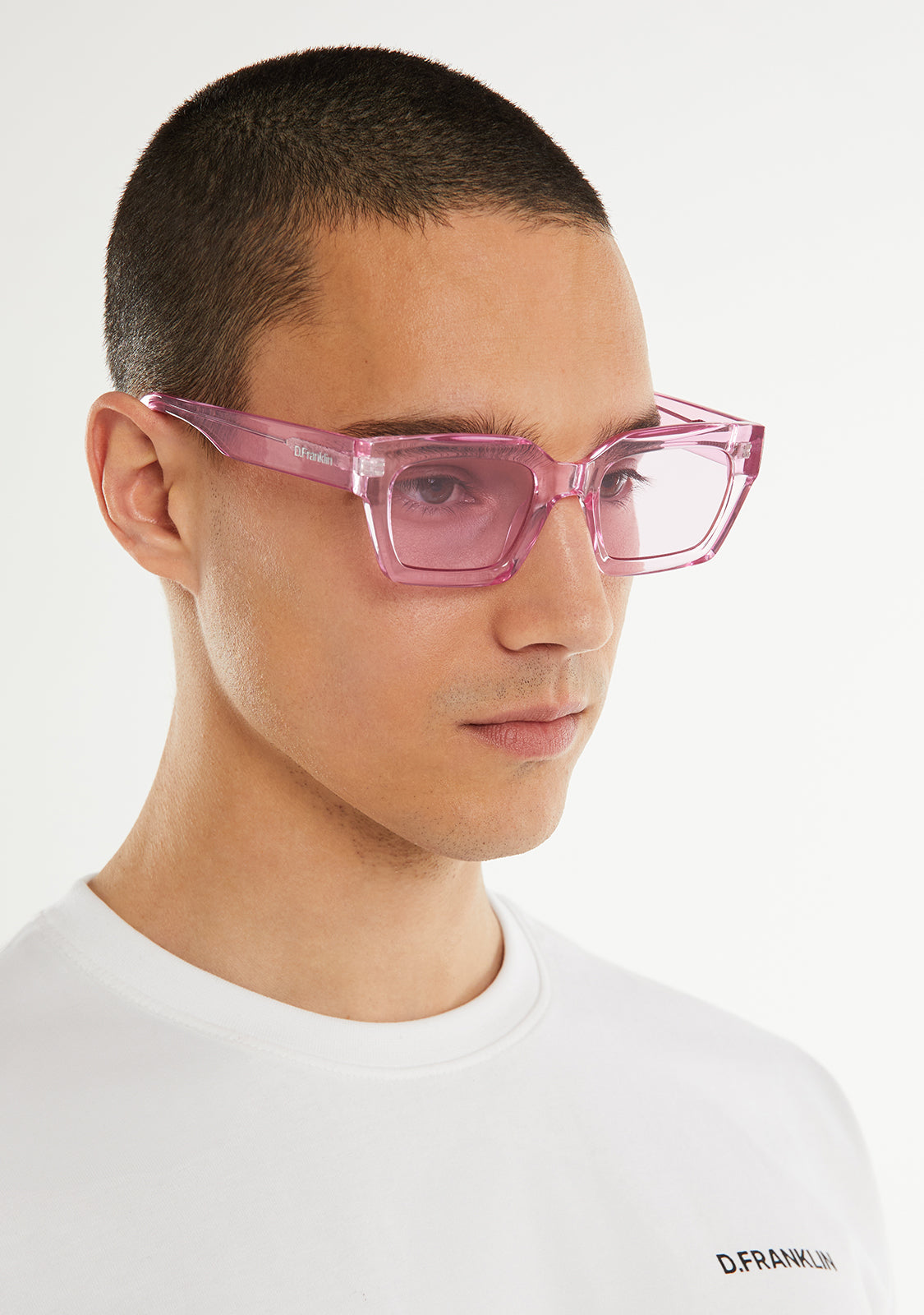 Unser Tokyo-Modell in rosa Tönen und im Vintage-Stil verfügt über die charakteristischen Details der Marke D.Franklin, das Logo, das auf den Bügeln eingraviert ist, und das Emblem auf der Linse. Die Linsenbreite beträgt 51 mm und die Front ist 143 mm. Die Bügellänge beträgt 145 mm.