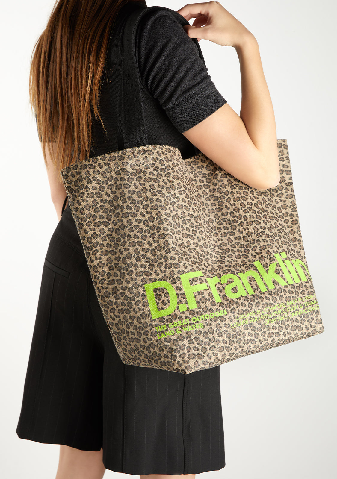 Gestaltet im Leopardenmuster, mit dem D.Franklin-Logo in Limettengrün.