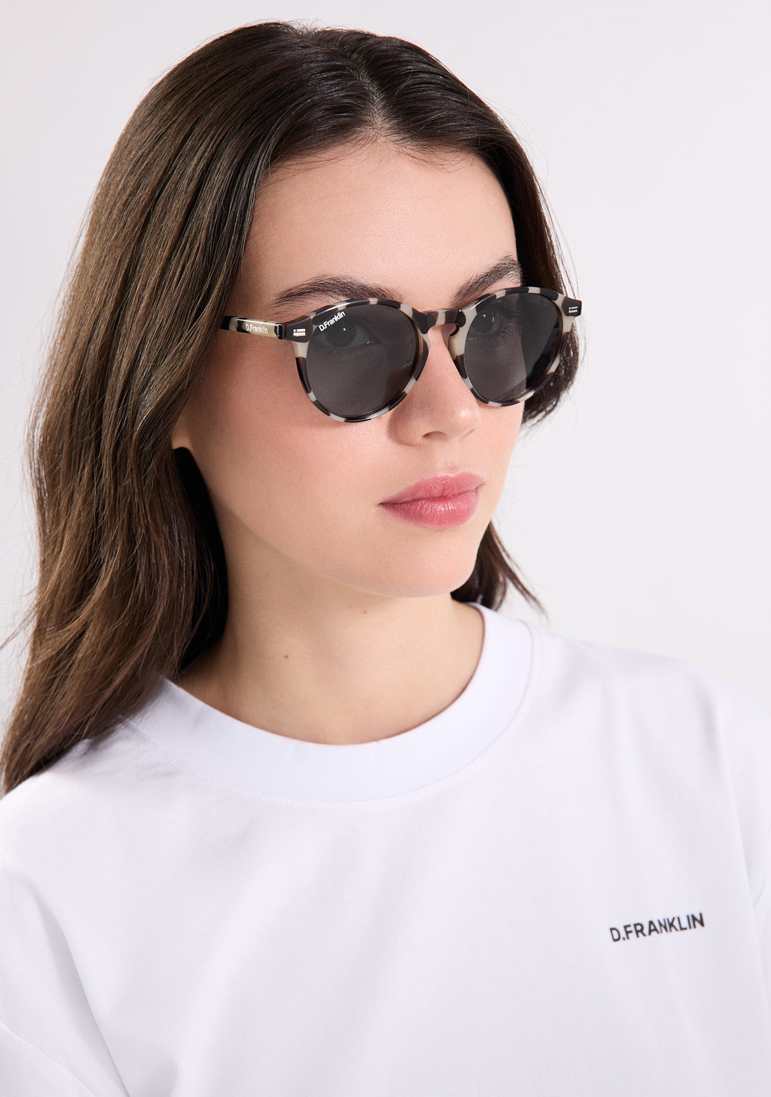 Bringen Sie Ihren Sonnenschutz mit den Ultra Light Max Light Tort / Black von D.Franklin auf die nächste Stufe, Sonnenbrillen, die für diejenigen entworfen wurden, die Stil, Leichtigkeit und Funktionalität suchen. Mit einem TR90-Rahmen und einer Brücke, einem ultraleichten und langlebigen Material, kombiniert mit Acetat-Bügeln, gewährleisten sie einen bequemen Sitz und außergewöhnliche Haltbarkeit.