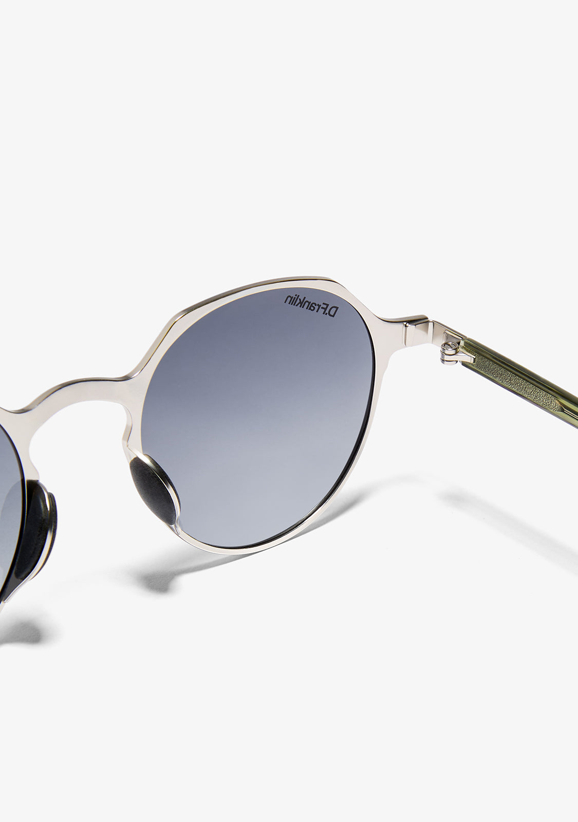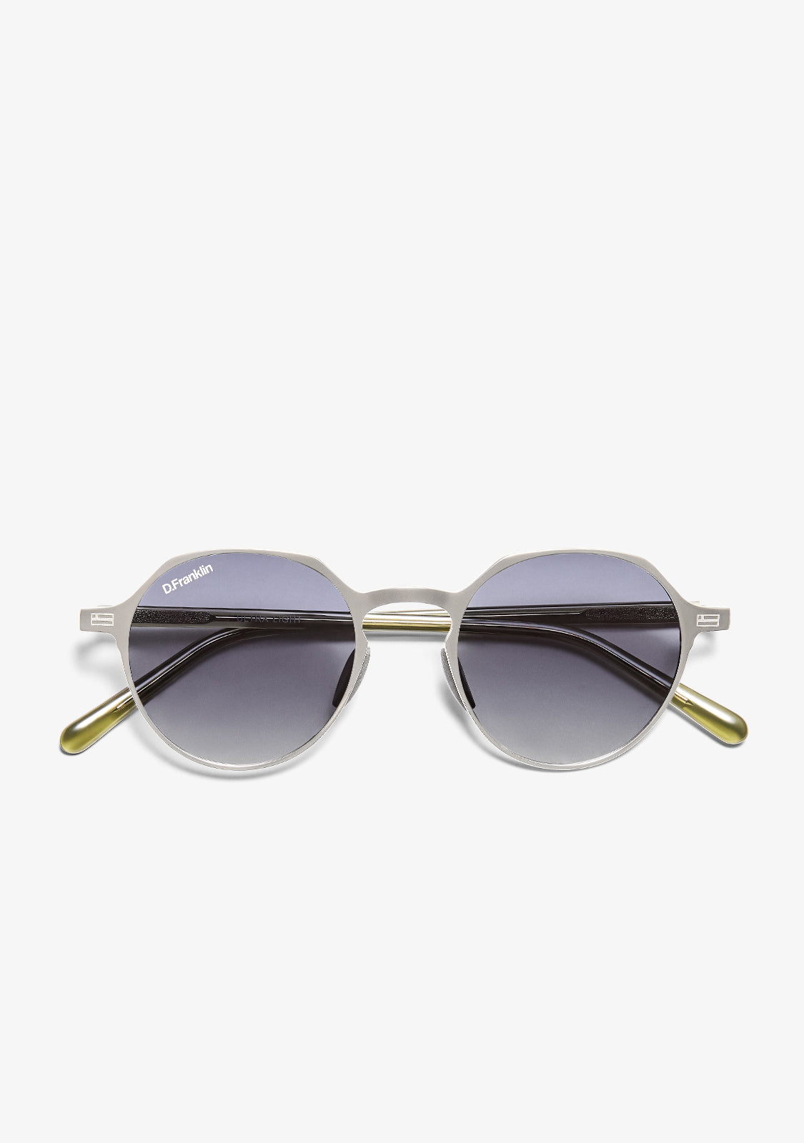 Ultra Light S Round Metal Silver / Gradient Smoke vereint ein klassisches Design mit einem Retro-Touch, neu interpretiert in einer runden, minimalistischen und eleganten Silhouette. Die silberne Metallfassung kontrastiert mit grünen Bügeln und sorgt für ein modernes, originelles Finish.