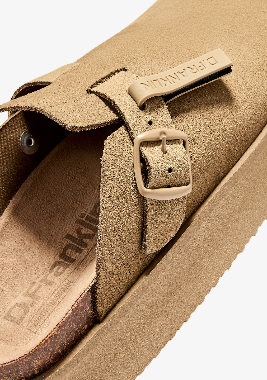 Entdecken Sie die perfekte Mischung aus Stil und Komfort mit den Vibe Sandalen Clog Platform Suede Sand Sandalen von D.Franklin. Hergestellt aus weichem Wildleder, bieten sie ein hochwertiges Finish, das jedes Outfit ergänzt.