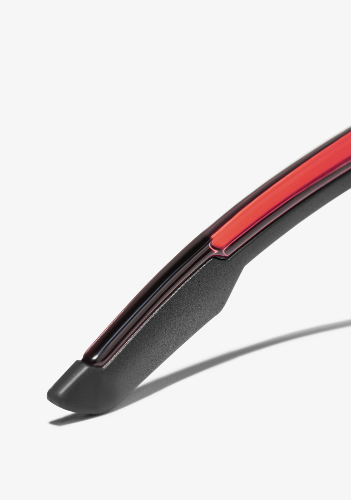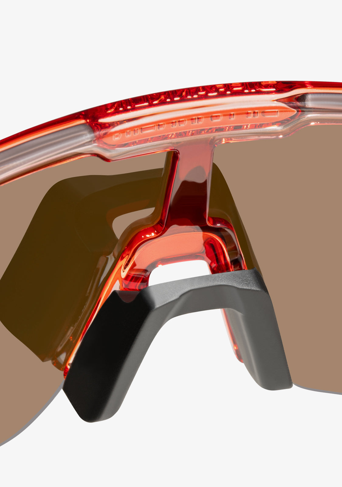 Das Wind-Modell verfügt über ein rötliches Finish und einen aerodynamischen Rahmen. Es hat eine einheitliche Front von 144 mm und eine Glasbreite von 140 mm, die ausschließlich dafür entworfen wurde, die Windbewegung zu erleichtern. Die Bügel sind 130 mm lang und tragen unser Emblem auf beiden Seiten. Darüber hinaus haben sowohl die Spitzen als auch der Nasensteg Silikonpolster für einen perfekten Halt.