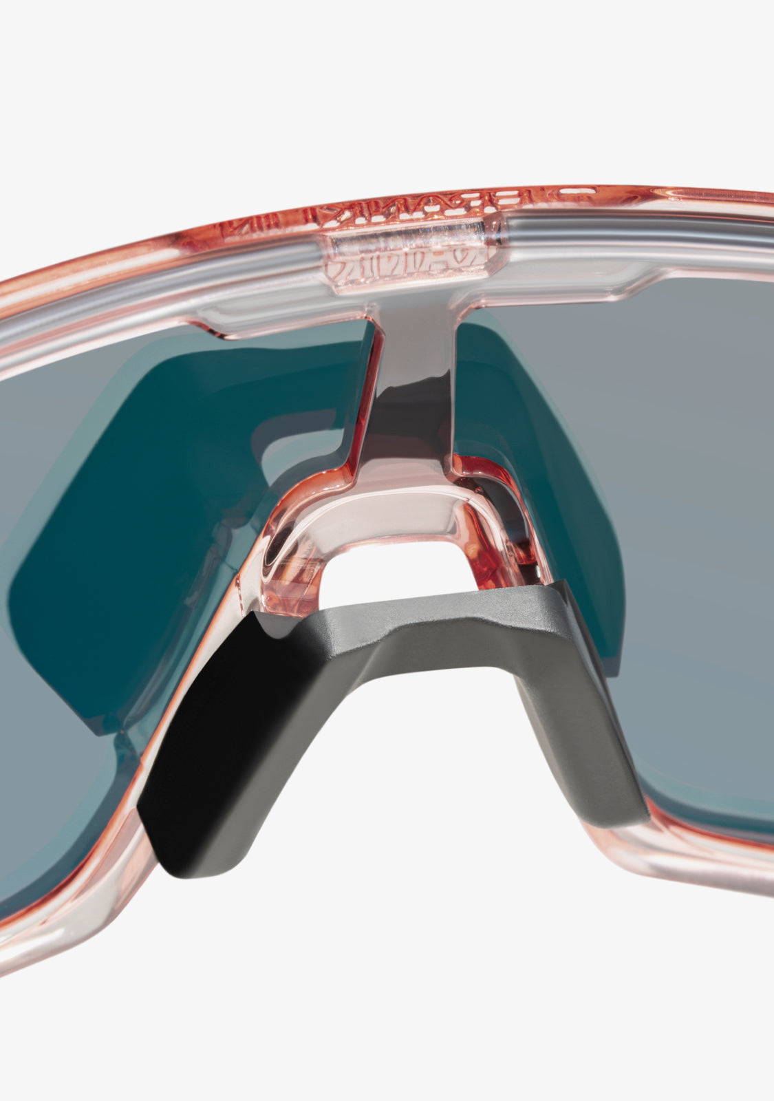 Das Wind-Modell verfügt über ein pinkes Finish und einen aerodynamischen Rahmen. Es hat eine einheitliche Front von 144 mm und eine Linsenbreite von 138 mm, die ausschließlich dafür entworfen wurde, den Windfluss zu erleichtern. Die Bügel sind 130 mm lang und tragen unser Emblem auf beiden Seiten. Darüber hinaus haben sowohl die Spitzen als auch die Nasenbrücke Silikonpolster für einen perfekten Halt.